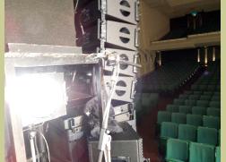 オーディエンスマイクは、 1Fフロントサイドよりゼンハイザー416、2F後方よりステージに向けてBK4006をステレオバーにてワンポイントセッティング、2F後方から1F観客向けセッティングでSM57、会場設備3天吊りでBK4006、計8本